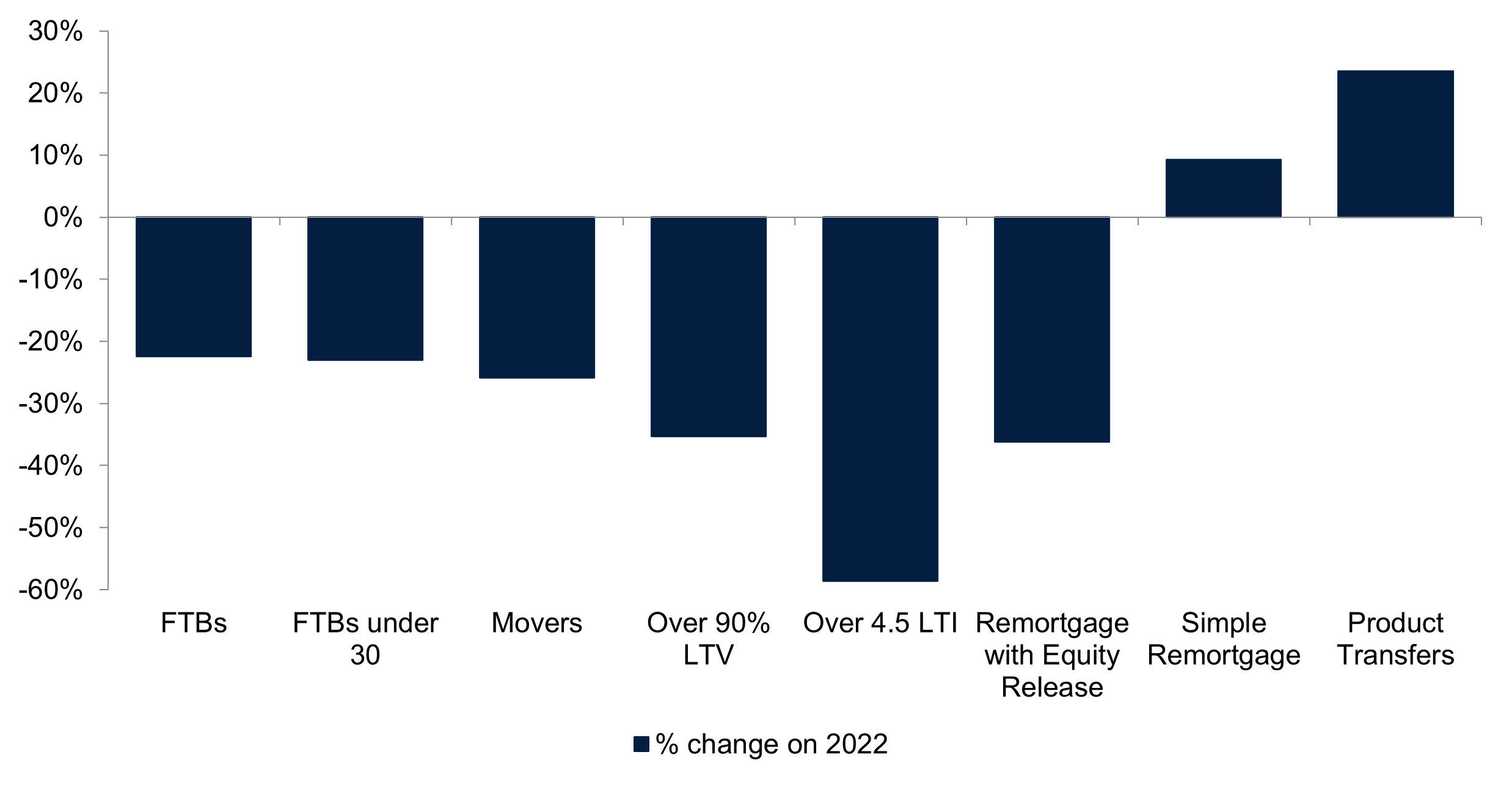 Meanwhile, mortgage refinancing remains strong with affordability pressures and competitive retention deals driving nine out of ten customers in 2023 to take a Product Transfer with their existing lender.